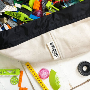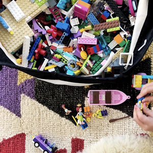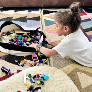 Modern + monochromatic! Take chic organization wherever you go with the Mini. Small enough to be mobile, the these mini bags hold a surprising amount of just about anything. A super-cute tote for toys, makeup, knitting and art supplies, tech gadgets, snacks…you name it. The perfect travel and organizational helper for your small ones and your small spaces. My favorite use - legos in the car or on the airplane!