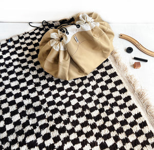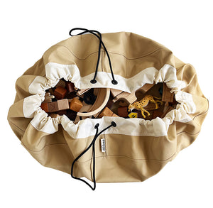 This is the ORIGINAL Swoop Bag that put us on the map in 2011. However, we have changed the design to add the 6" edge piece to really contain all those small pieces. The quality and durability of our bags is our number one priority.When opened wide, this toy bag converts to a circular playmat that 4-5 kids can comfortably play around, not on top of. Swoop Bags are a cleanup dream and toy storage solution for parents, caregivers or anyone that is facing the challenge of picking up all those little pieces. Just “Swoop up” the bag with the drawstring cords, tie cords to secure closed (like tying your shoes) and stow in a bin, hang on a bed post, hook or door knob or just leave on the floor. You can watch our how-to VIDEO to see just how easy cleanup is.